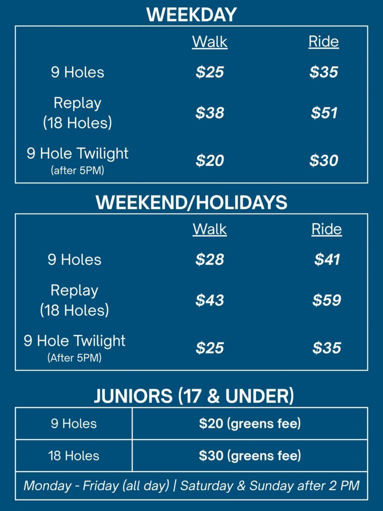 Tee times are required Saturday & Sunday. Please call the Pro-Shop at (717) 464-4448 for availability.